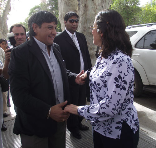 La gobernadora será recibida –primero- por el intendente de San José, León Mendoza, y más tarde por el intendente Jorge Andersch.