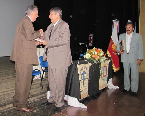 Por su parte, Tomassi hizo entrega de un presente al representante del Tribunal de Cuentas en conmemoración de las Jornadas de Actualización Doctrinaria; luego invitaron al publico presente a seguir participando de la de disertación q estaba a cargo del Lic. Carlos Jais; Dra. Rosa Ana Azurmendi y para finalizar el Dr. Mauricio Hezze Aguiar.