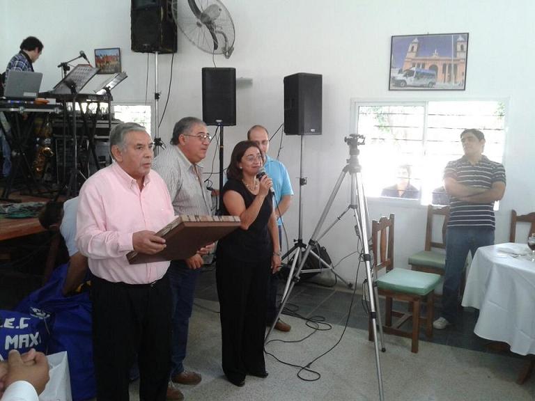 Lucía recibió una plaqueta de reconocimiento por parte de la CGT, y entregó camisetas y equipos de fútbol a los jugadores que representan al gremio en la Liga de Veteranos.