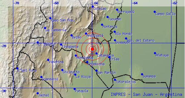 Según el INPRES el sismo ocurrió a las 22:23:01 hs. El epicentro se ubicö a 30 Km en direcciön noroeste de la ciudad de San Fernando del Valle de Catamarca. La magnitud del sismo fue de 3.4 grados.