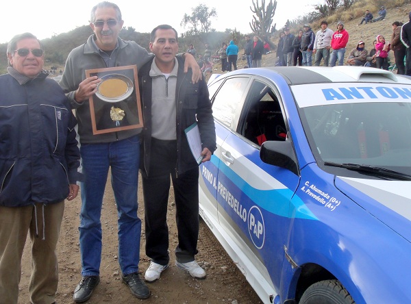 En la foto, “Cacho” Correa y Ariel Pacheco, de la organización de la actividad, entregando una plaqueta en reconocimiento “a su trayectoria deportiva, de 30 años al volante”, Antonio Prevedello.