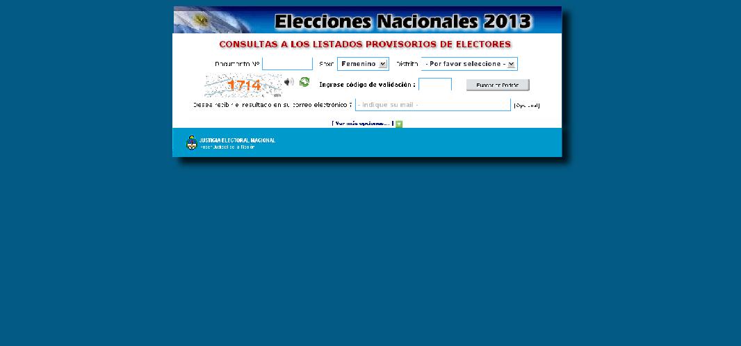 Se recomienda especialmente a los electores riojanos que hayan realizado cambio de domicilio, cambio de Documento Cívico, como así también aquellos que cumplan 16 años al 27 de octubre de 2013 inclusive, verifiquen su situación registral.