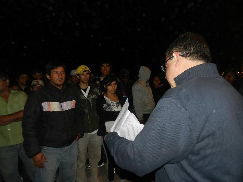 En horas de la noche, y en presencia del fiscal Municipal, Miguel Figueroa Vicario, el intendente Jalil arribó una vez más al predio en donde varias familias habían instalado casillas con la intención de usurpar los espacios, y luego de un extenso diálogo arribó a una solución al conflicto.