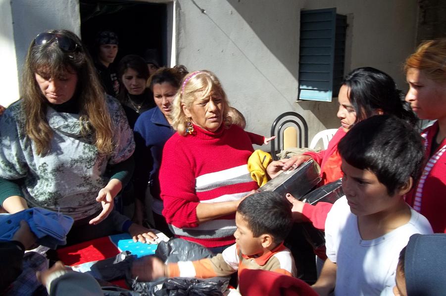 Los militantes iniciaron la recorrida por los domicilios donde conversaron con los vecinos, compartieron un delicioso chocolate y donaron ropa y calzado.