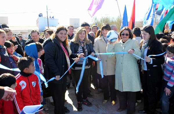 La Dra. Corpacci, con la intendenta Soria y la madre del niño homenajeado Alejandra Vaquel, vecina del barrio, desataron las cintas inaugurales, luego de lo cual lanzaron pelotas de fútbol, de básquetbol y de voleibol al flamante predio polifuncional, para que los chicos y jóvenes del vecindario comiencen a disfrutarlo. También intervino la presidenta del Centro Vecinal, Liliana Quinteros de Faerman, quien agradeció “por este sueño”. “Nos ha costado bastante lograr este polideportivo, y por eso estamos muy felices con este sueño cumplido”, enfatizó emocionada la vecina, agradeciendo por la obra “a la Dra. Corpacci, al ministro Dusso, y todos lo que aportaron su granito de arena para esta realización”.