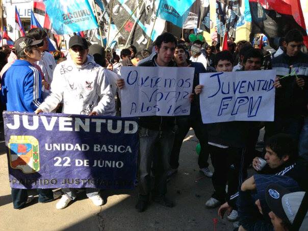 El reclamo de la juventud representada en diferentes agrupaciones fue la sanción completa del proyecto de ley iniciado por el diputado Jorge Moreno, el cual propicia el voto joven a partir de los 16 años tal como lo establece la Ley Nacional número 26.744, que fuera aprobado en la Cámara de Diputados en mayo de este año para su tratamiento en el Senado.