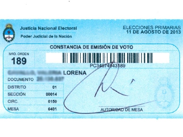 Desde estas elecciones Primarias, Abiertas, Simultáneas y Obligatorias la constancia de emisión del voto no será más el tradicional sello. Los electores recibirán un troquel como constancia de emisión del voto.
