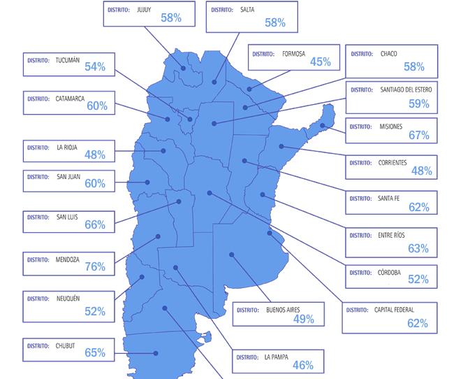 Según datos de la Cámara Nacional Electoral, en Catamarca, a las 16:45, ya había votado el 60% del total del padrón, (278.151 electores). A nivel nacional ese porcentaje alcanza el 57,08%. La provincia con mayor participación a esa hora era Mendoza con un 76%.