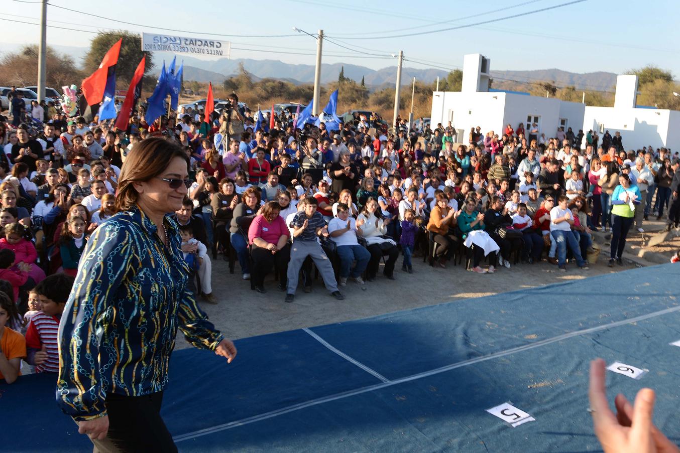 “Muchos de Uds. dejarán de vivir con sus padres, con sus suegros, con sus hermanos; otros dejarán de alquilar y podrán destinar ese dinero a otras necesidades de sus familia”, detalló Lucía, resaltando también que “construir viviendas es poder brindar soluciones para quienes no las tienen; pero además generar mucha mano de obra, porque estas casas fueron levantas por obreros, albañiles, electricistas, plomeros, que antes no tenían expectativas laborales”.