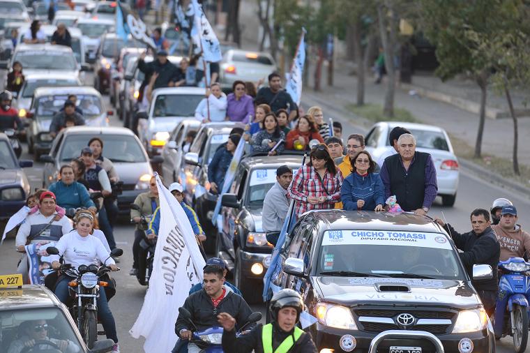 Ya con una fila de casi trescientos vehículos, la caravana ingresó triunfal al barrio Marcos Avellaneda, para concluir frente a la nueva sede del Frente Para la Victoria, sobre Avenida Italia.