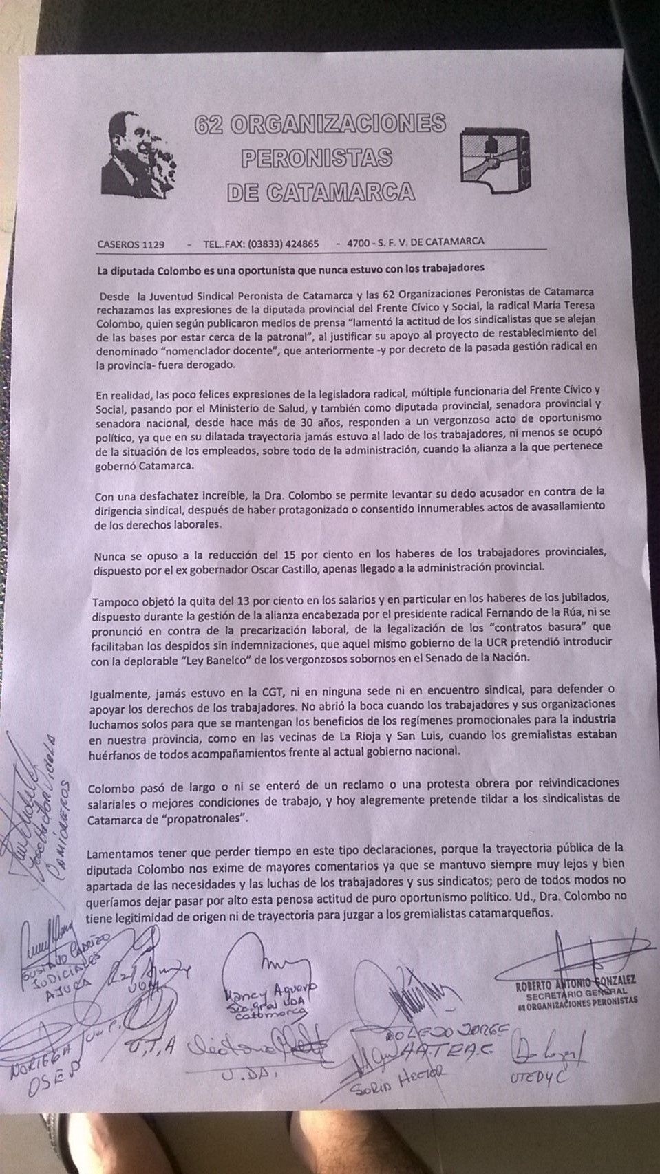 trabajo, y hoy alegremente pretende tildar a los sindicalistas de Catamarca de