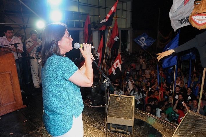 Una multitud de militantes participó de un encuentro frente a la renovada sede justicialista en Avenida Guemes, donde se levantó un imponente escenario. Desde distintos puntos de la ciudad y el interior, llegaron columnas con militantes de diferentes sectores peronistas, en una nueva manifestación de apoyo al liderazgo de Lucía.