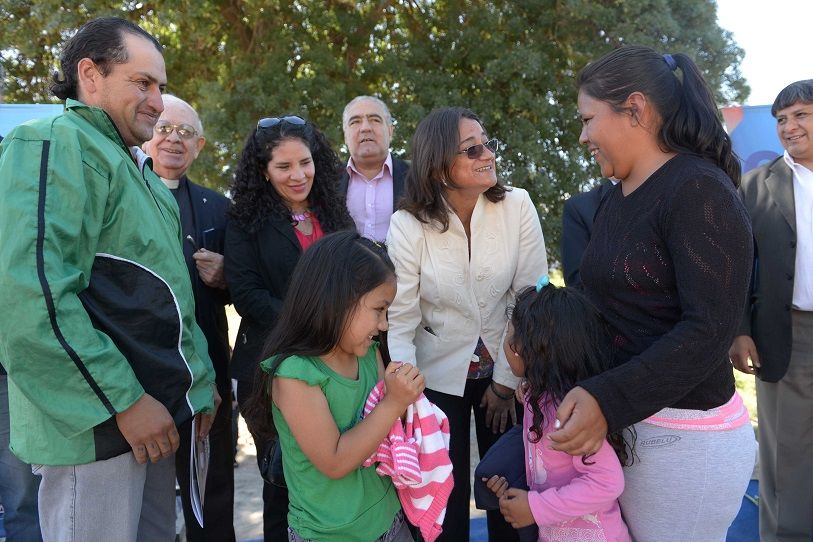 "Por eso para mí es una alegría ver que están ustedes acá, que acá donde vivieron siempre les pudimos hacer la casa. Está el ministro de Producción Raúl Chico, que ha traído además para estas viviendas unas viñas, fertilizantes, algo de alambre para los que les haga falta, para que puedan seguir produciendo en este lugar”, añadió Lucía.