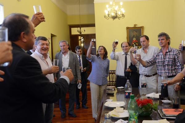 "Pequeño brindis con @dalmaciomera y nuestros diputados y senadores... por un gran 2015 para todos los catamarqueños!!", twitteo la gobernadora.