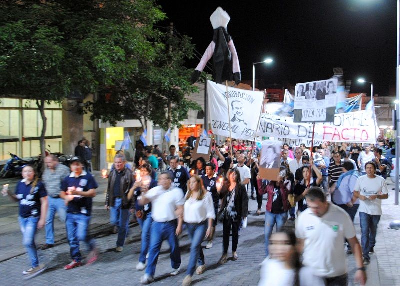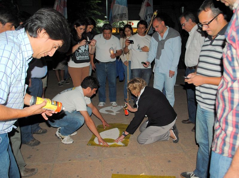 La "Vigilia de la Memoria” continuó con un paseo de antorchas, desde el Cine Catamarca, por San Martín, Rivadavia y República hasta la plazoleta de la Bandera, donde los representantes de las distintas organizaciones de derechos humanos como de familiares de detenidos y desaparecidos procedieron a repintar los pañuelos que, desde hace tres años, recuerdan a los desparecidos catamarqueños en ese paseo público.
