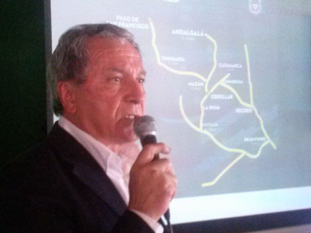 Sobre el proyecto de "reactivación del ramal del Ferrocarril Belgrano Carga”, Dusso describió apoyado con imágenes de "power point” que "en principio existen dos iniciativas, proyectadas desde las estaciones de Cebollar, en La Rioja, y desde la estación de Recreo, en nuestra provincia, una para unir a Andalgalá con el puerto de Rosario, y la otra para volver vincular con el tren a Tinogasta, y a partir de allí la salida hacia Chile por una vía que pasaría por Fiambalá, y el Paso de San Francisco, con destino terminal en Puerto Caldera”.