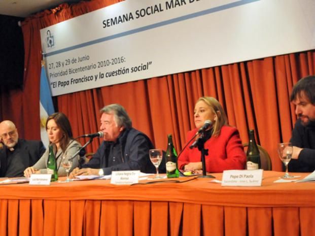 Desde el estrado lo escuchaban el delegado de la Pastoral