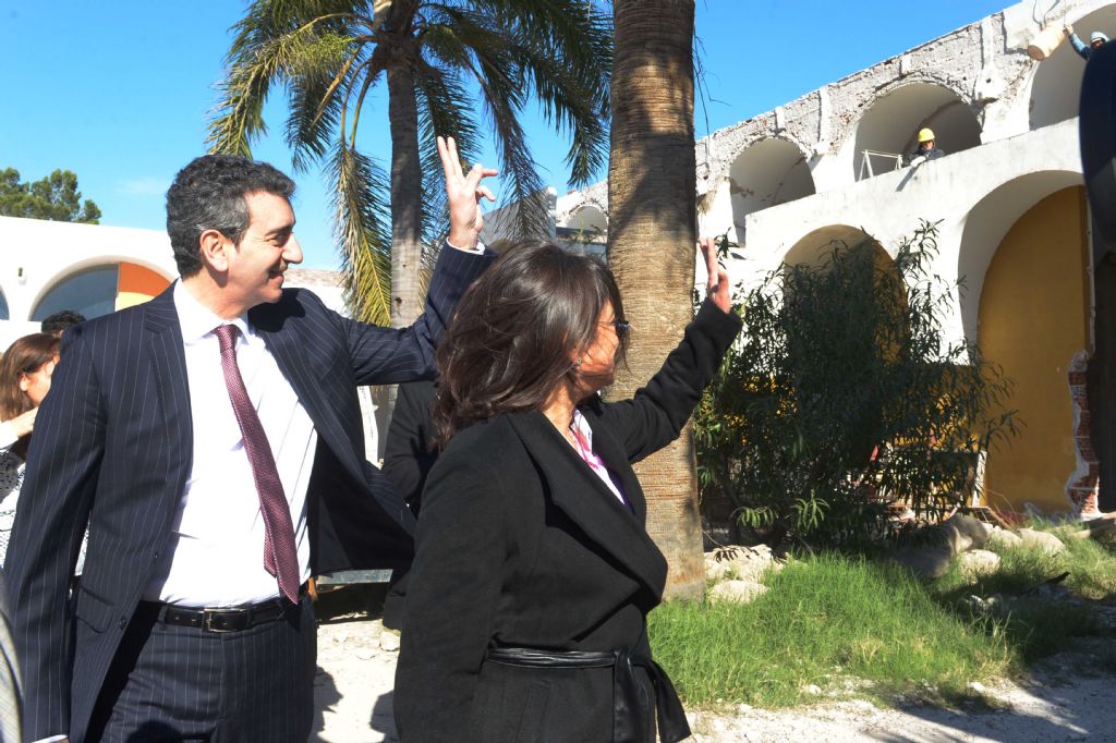 La jefa de Estado se trasladó con el funcionario nacional a Casa de Gobierno, pero previamente recorrieron la obra del Centro de Promoción e Integración Juvenil, que con grandes avances se ejecuta en el predio del ex hotel Sussex.