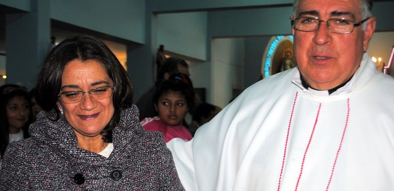 Con ese mismo festivo ánimo, en medio de los cantos finales, el párroco Orquera, verticalista al fin como toda la Iglesia, se dirigió hacia el centro del templo, donde estaba la Dra. Corpacci, y tomándola del brazo la acompañó hasta la vereda de la capilla. Allí, esperaban las antorchas, que en silenciosa procesión partieron hacia la esquina de Av. Italia y Prado, donde está el monolito que recuerda a "Evita”, encabezadas por la gobernadora y el vicegobernador, juntos. Mera se excusó para retirarse a otro acto por Eva Perón, en el "Urbano Girardi”, pero después que a las 20.25 una trompeta llamara a silencio evocando el doloroso instante de deceso de la "Jefa Espiritual de la Nació”, hace ya 62 años.