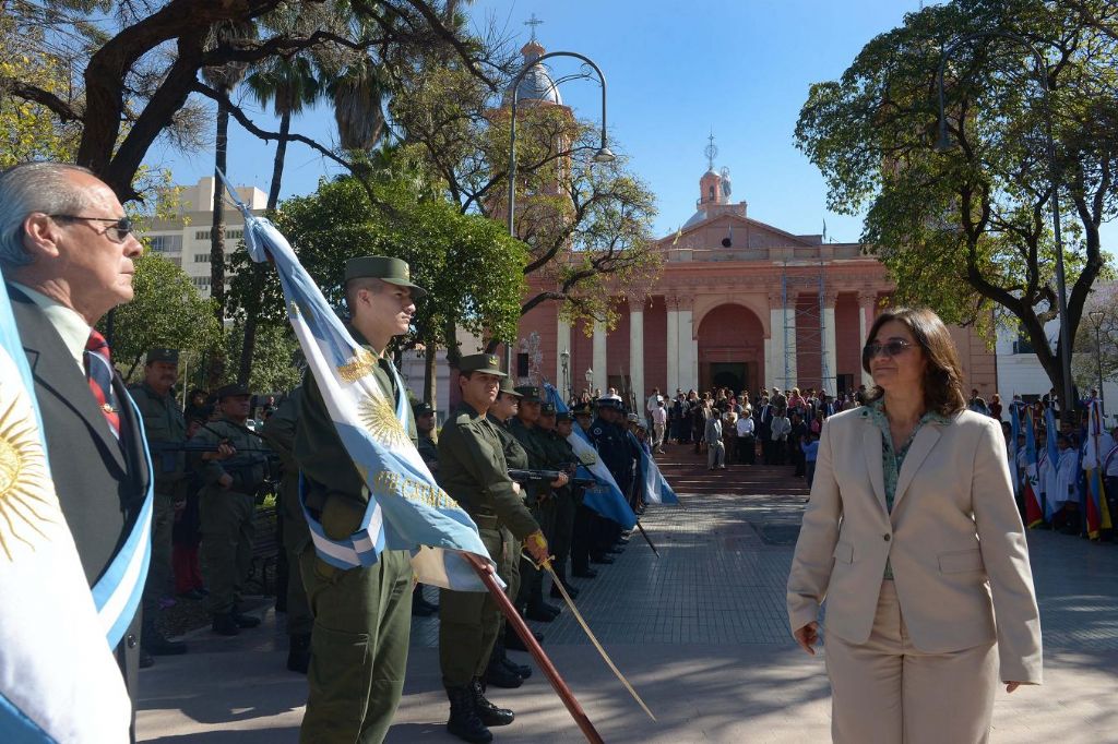 La jefa de Estado asistió primero a un oficio religioso en la Catedral Basílica, para luego encabezar la ceremonia central en recuerdo del Libertador, del que participaron abanderados de escuelas y miembros de las fuerzas de seguridad.