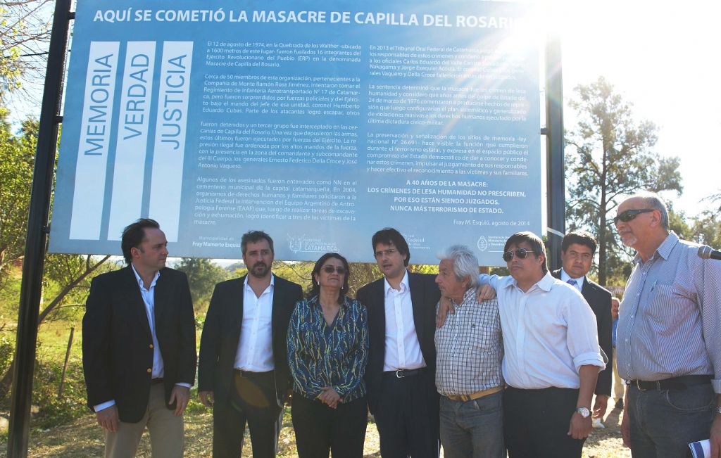 La Red Federal de Sitios de Memoria estuvo a cargo de la señalización del sitio donde se cometió la Masacre de Capilla del Rosario, en la intersección de la ruta provincial N°1 y la avenida Capilla del Rosario. Y Vialidad Provincial instalo los carteles indicadores.