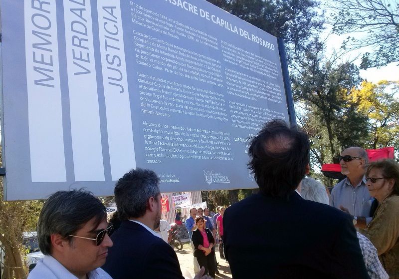 De la evocación de esta tarde, a 40 años de la Masacre de Capilla del Rosario, participaron además los ex detenidos por esta causa Mario "el Indio” Paz y Jorge "el Villero” Ramírez; la dirigente por los Derechos Humanos y principal promotora por el esclarecimiento del caso Mirtha Argañaraz de Clérici; y los abogados Jorge Marca y Guillermo Díaz Martínez quienes instaron la investigación y luego representaron a la querella en el juicio de lesa humanidad, respectivamente, sustanciado en la Justicia Federal de Catamarca.