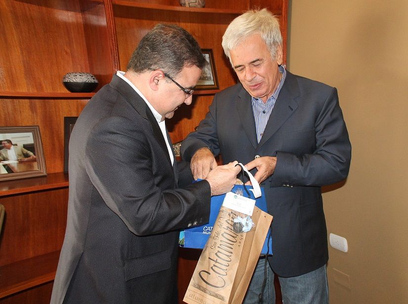 El intendente Raúl Jalil obsequió a Juan Manuel de la Sota un vino elaborado en Catamarca y una chalina de vicuña del Programa Textil Artesanal que funciona en la Casa de la Puna.