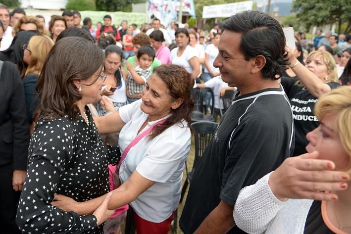 La mandataría estuvo acompañada por el ministro de Obras Públicas, Rubén Dusso; el secretario de la Vivienda, Octavio Gutiérrez; el diputado nacional Isauro Molina; el secretario de Agricultura, Eduardo Toledo; el intendente de El Alto, Ariel Ojeda; y los concejales Omar Ovejero (Los Altos) y Mario Páez (Santa Rosa).