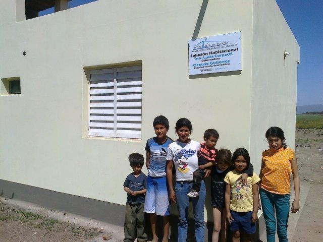 Manantiales y 3 en la localidad de Alijilán, frente a un módulo a entregar