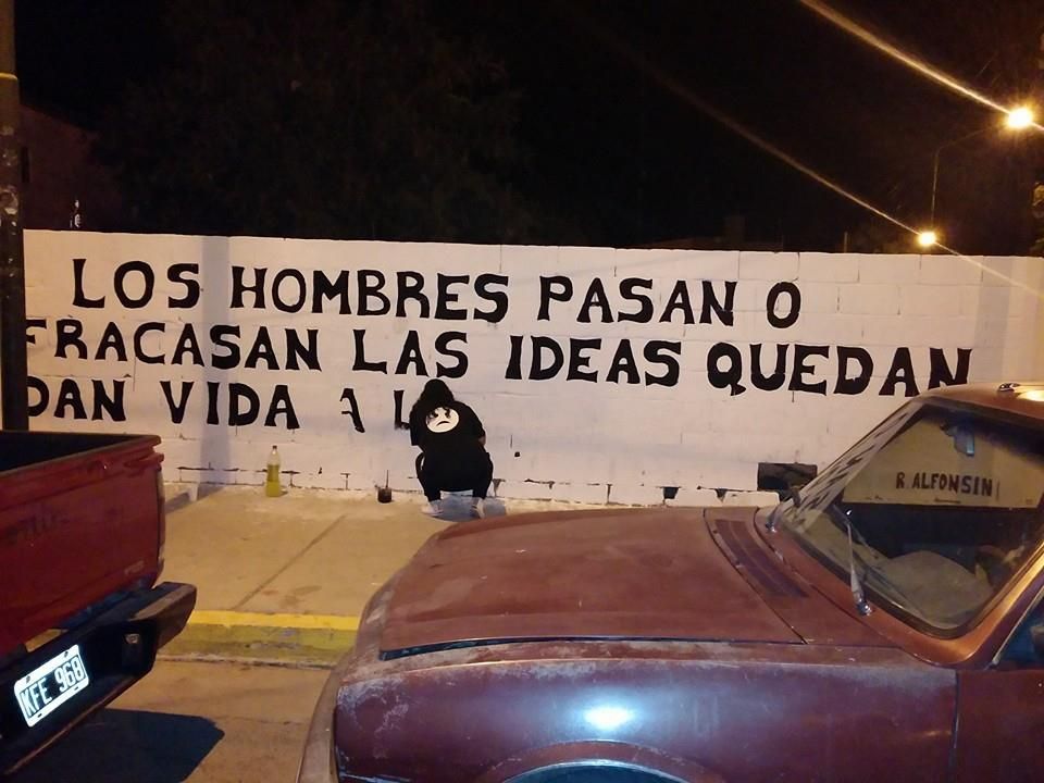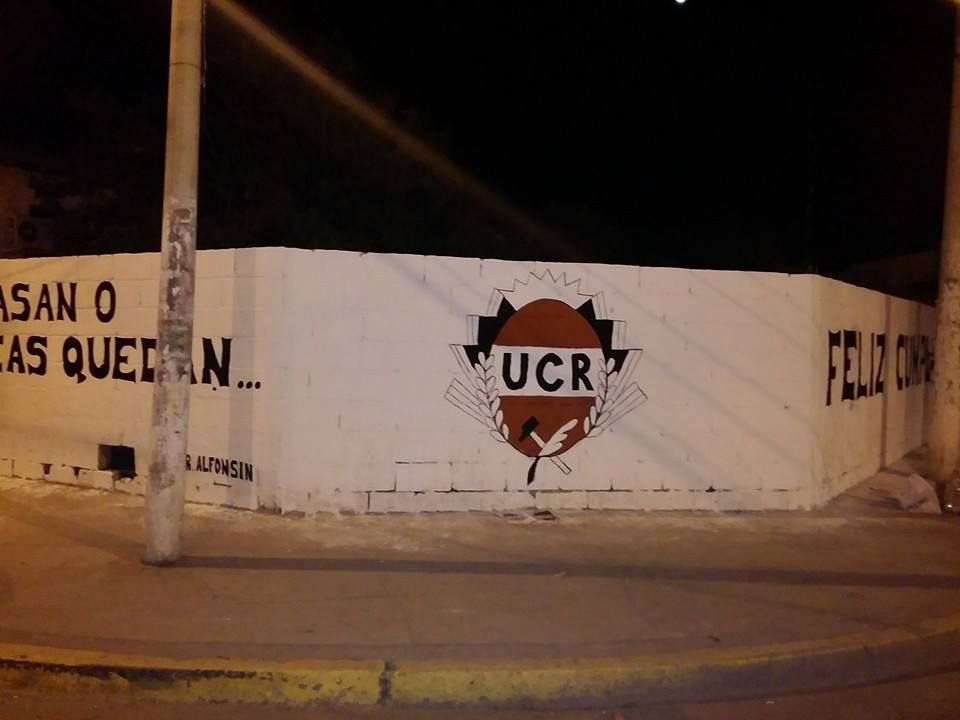 terreno, donde plasmaban una frase del Dr. Raúl Alfonsín acompañada del escudo del