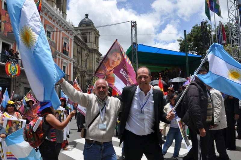 El legislador también asistió a la ceremonia ancestral de investidura con el tradicional ritual simbólico en el sitio arqueológico de Tiahuanaco, en la que estuvieron representantes de movimientos sociales de seis países, a unos 100 kilómetros de La Paz, sitio que tienen una gran significación espiritual para el mundo andino.