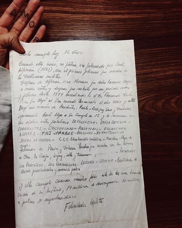 esta carta que escribió el día que yo cumplía 15 años. Patriota amado siempre hablándome