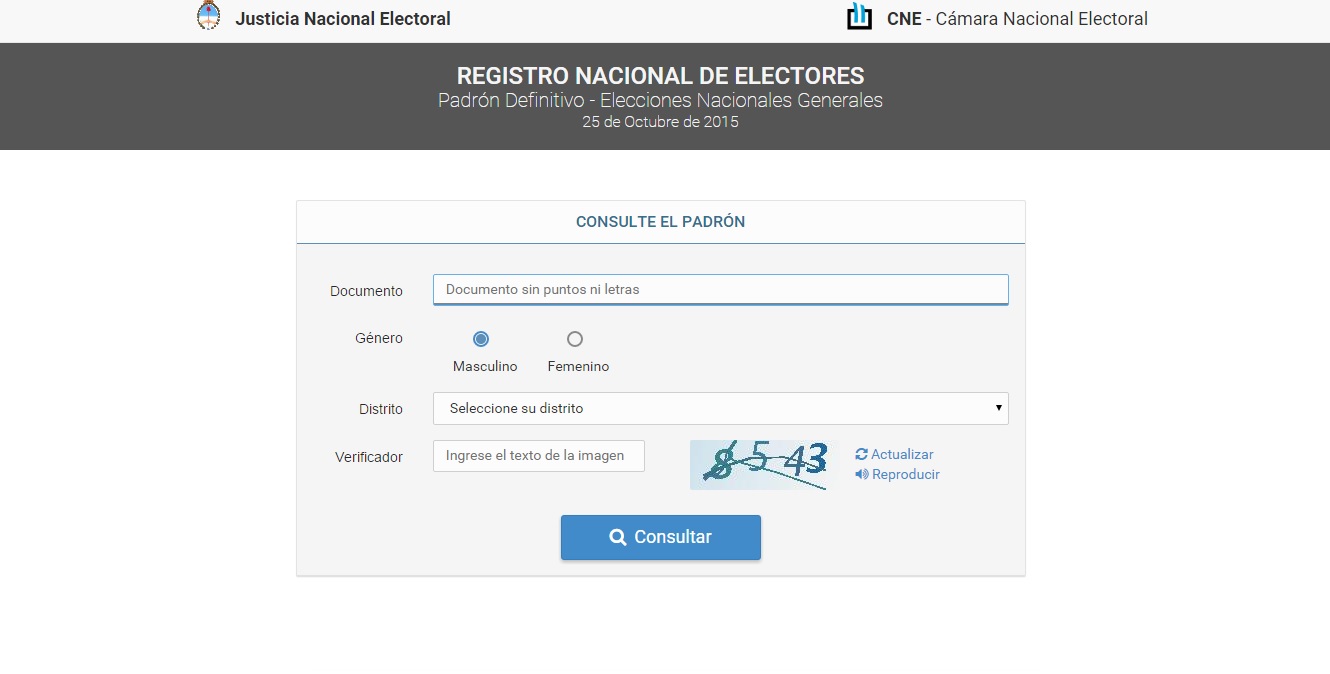 La Cámara Nacional Electoral puso a disposición el padrón para que cada ciudadano pueda saber dónde votar. En caso de tener dudas, consulta tu lugar de votación.