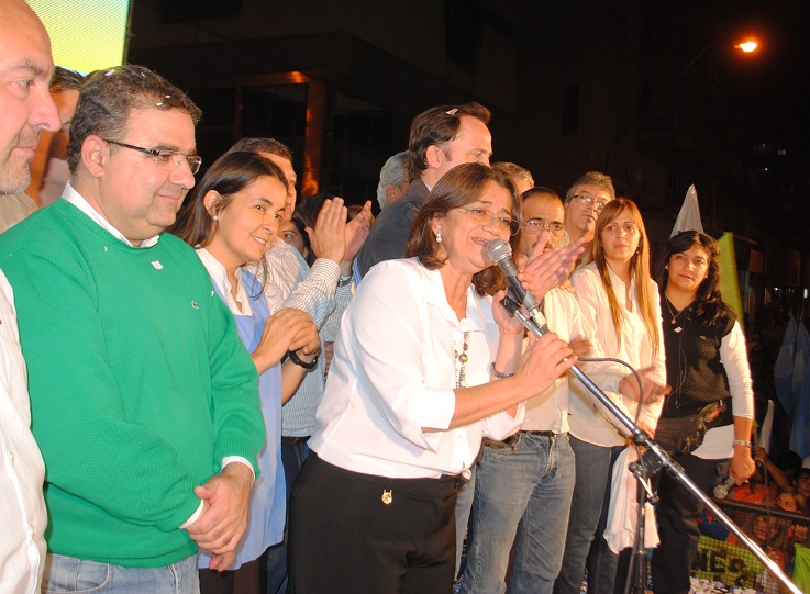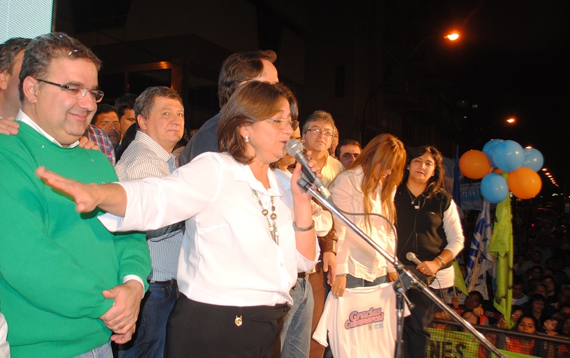 Con un discurso entusiasta y reflexivo, la gobernadora de la provincia, Dra. Lucía Corpacci celebró el nuevo triunfo electoral del Frente para la Victoria (FPV), felicitando a todos los candidatos, muy especialmente a Raúl Jalil y a Octavio Gutiérrez, a todos sus ministros y funcionarios “que acompañaron con su gestión”, como “a todos los militantes que hicieron realidad esta nueva victoria del peronismo en Catamarca”.