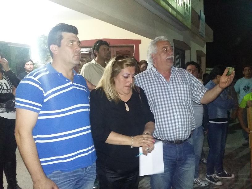 El intendente de Los Altos, Rafael Olveira, acomnpañado por los candidatos Mario Racciatti y Fernanda Davalos, comentó que en todo el distrito se obtuvo el 62% de los votos escrutados, con una diferencia de más de 17% sobre el FCyS.