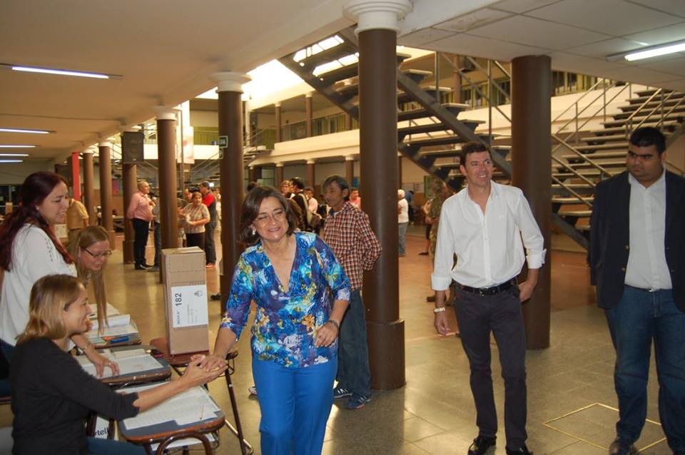 La gobernadora de la provincia, Lucía Corpacci, llegó a las 9 en punto para emitir su voto en el Colegio Quintana, como es su costumbre en cada elección.