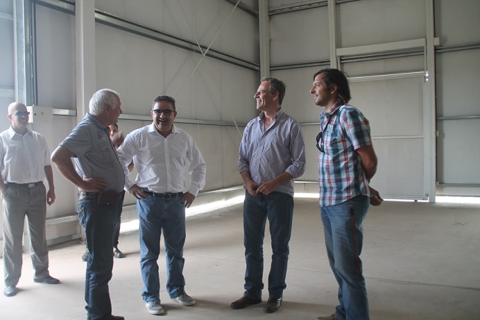 El intendente Jalil mostró los avances de la obra a su par chacarero: la nave central está completa, las oficinas administrativas y el espacio para el laboratorio sanitario ya están finalizados como así también los baños y los cordones cuenta para el ordenamiento del tránsito vehicular en el interior del predio.
