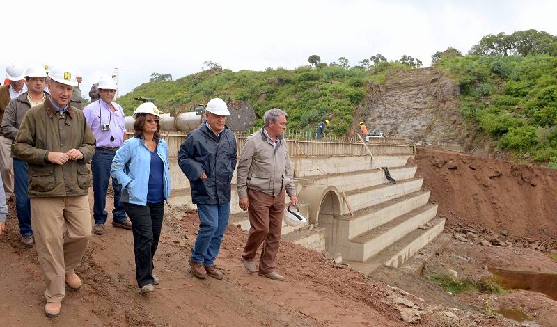 La jefa de Estado recorrió el dique acompañada por el ministro de Obras Públicas, Rubén Dusso, el subsecretario de Recursos Hídricos, Juan Negui, personal técnico del ministerio y los encargados de la empresa que lleva adelante la construcción.