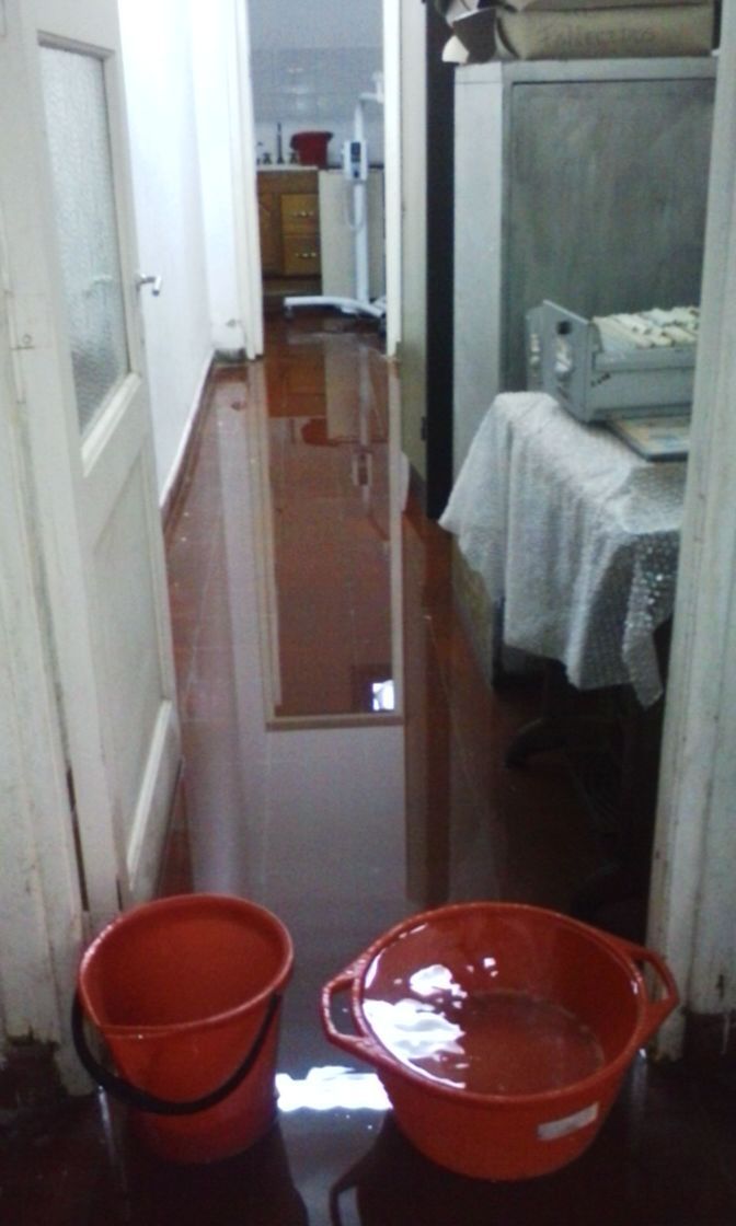 Las falencias son visibles, tal como lo muestran las fotos, sectores inundados, humedad en las paredes, entre otras.