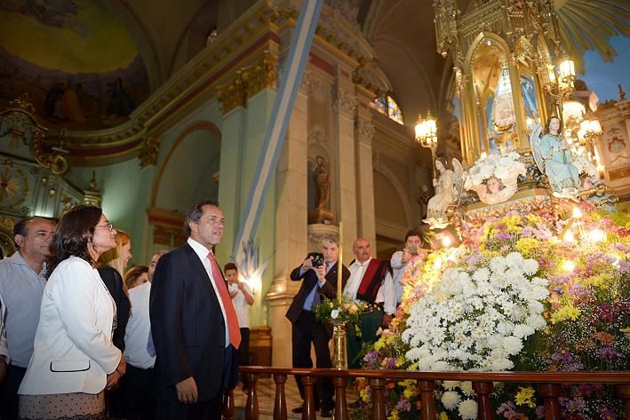 Scioli visitó junto a Lucía a la Virgen del Valle en la Catedral Basílica, y desde allí ingresaron a Casa de Gobierno.