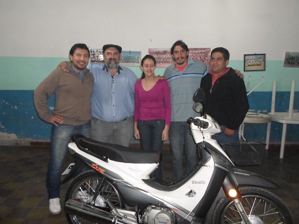 entrega en nombre del intendente Mendoza, la moto 0 Km. a los integrantes de la