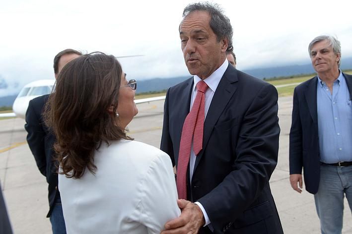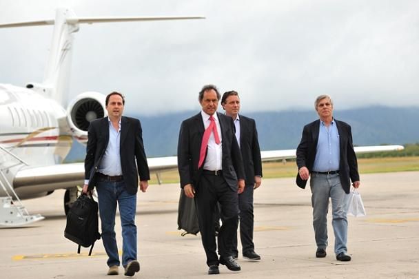 Scioli, arribó en un avión particular, acompañado por el vicegobernador de la Provincia, Dalmacio Mera.