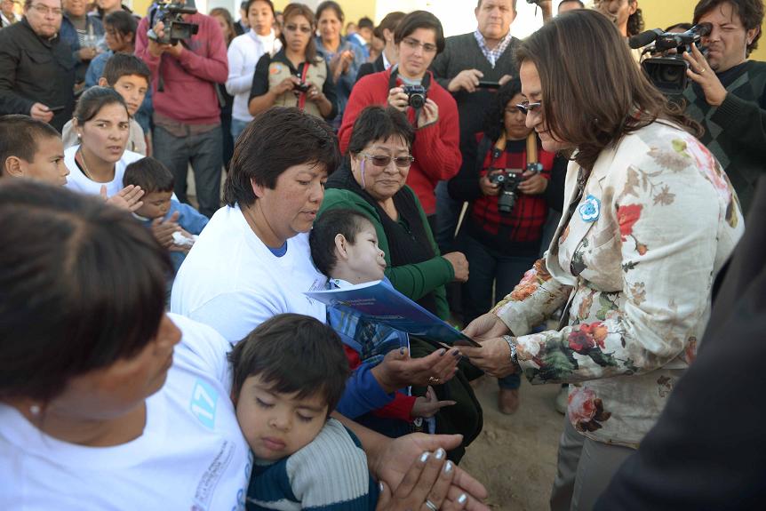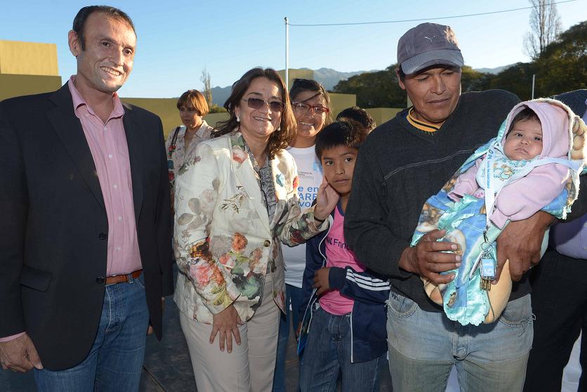 La mandataria fue recibida por el intendente de San José, Pedro León Mendoza, y estuvo acompañada por el administrador del IPV, Dante López Rodríguez; el ministro de Obras Públicas, Rubén Dusso; el ministro de Producción, Raúl Chico; el secretario de la Vivienda, Octavio Gutiérrez; el diputado Nacional, Isauro Molina; el Delegado de Desarrollo Social de la Nación, Álvaro Herrera y autoridades del municipio.