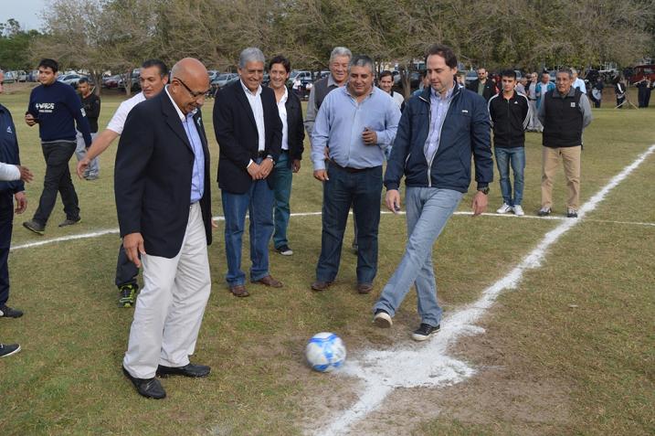 Para finalizar y dejar inaugurado el torneo, Mera dio el punta pié inicial junto a las autoridades de la provincia.