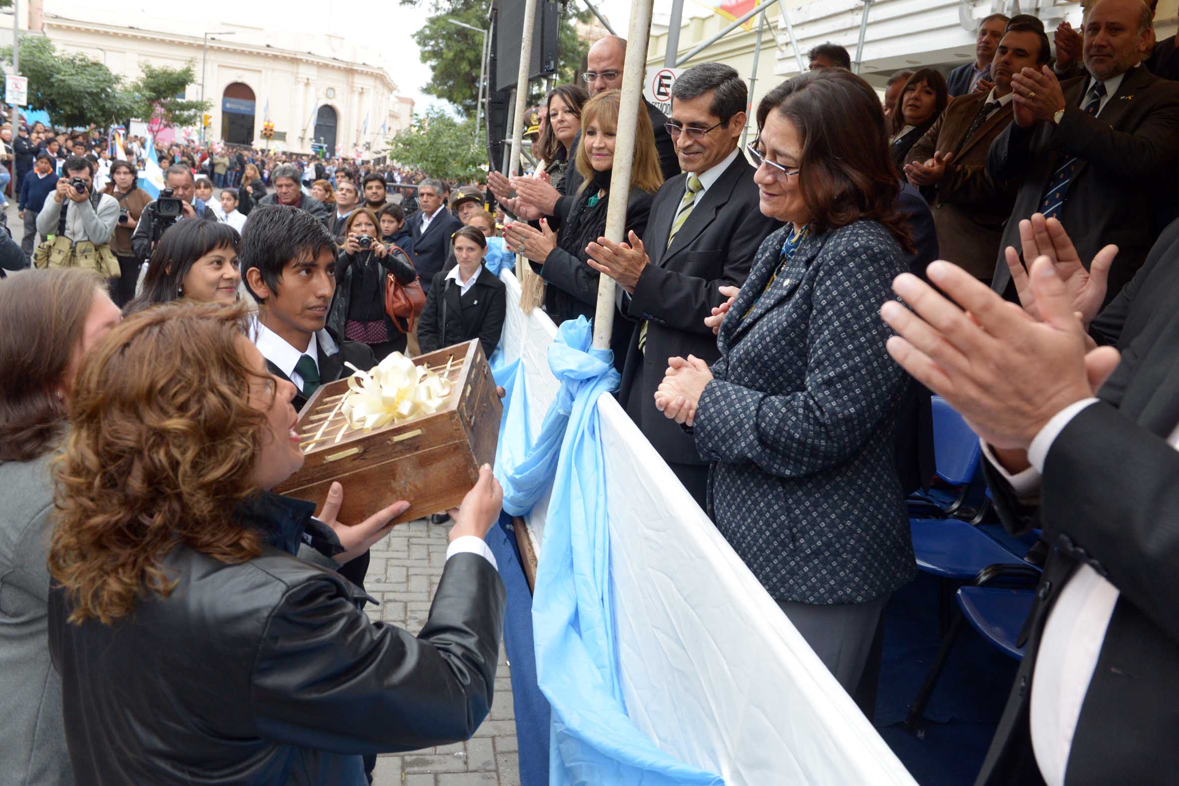 frente al Cine Teatro Catamarca, para presenciar el desfile cívico-militar,