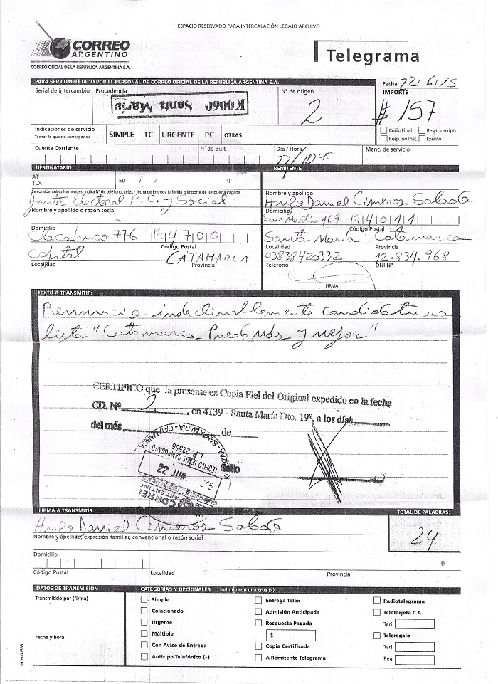 términos, además yo no firme nada”, sostuvo el abogado santamariano.