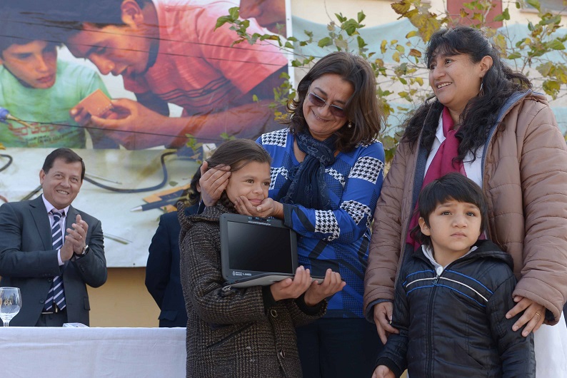 A su llegada, Lucía presidió un acto en la plaza 25 de Mayo, en donde se entregaron herramientas y equipos de trabajo para las diferentes escuelas técnicas del departamento. En el mismo acto, a través del ministerio de Educación se entregaron ludotecas a los Jardines de Infantes Nuclearizados (JIN) de Tinogasta. Luego, con las políticas de inclusión que lleva adelante el Gobierno Nacional a través del Programa "Conectar Igualdad” que coordina el ANSES, se entregaron 280 notebooks a los alumnos de las escuelas secundarias de Tinogasta.