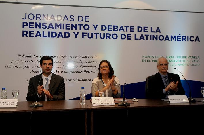 La Gobernadora Lucía Corpacci participó esta tarde del sexto módulo de las Jornadas de Pensamiento y Debate de la Realidad y Futuro de Latinoamérica, organizadas por la Vicegobernación como parte de las actividades en homenaje al 145 aniversario del paso a la inmortalidad del General Felipe Varela.