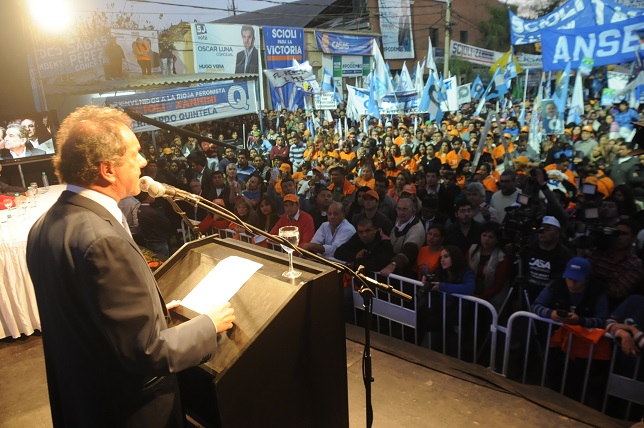 "Trabajamos para llevar esperanza y unidad, invirtiendo en infraestructura, con un proyecto que busca cuidar a su gente, niños y abuelos", sostuvo Scioli junto al secretario General de la CGT y titular de la UOM, Antonio Caló, y ante más de 20 mil personas.
