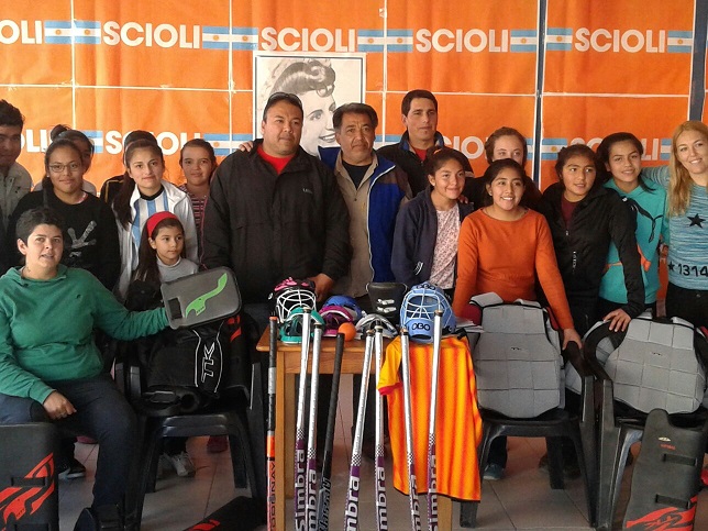 La indumentaria entregada constó de 2 equipos completos de arquero, 12 palos de hockey, 12 bochas y 4 máscaras.